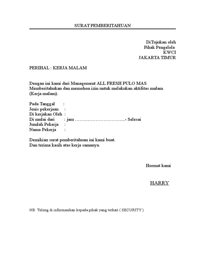 Contoh Surat Tugas Lembur Contoh Surat