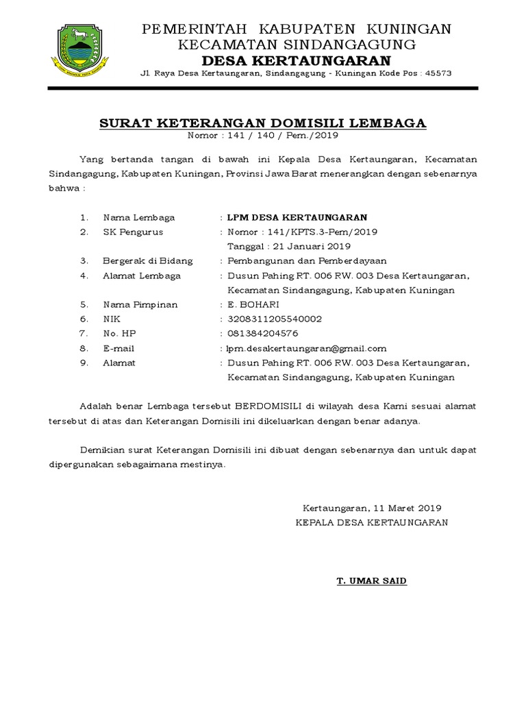 Contoh Surat Domisili Lembaga Dari Kepala Desa Contoh Surat