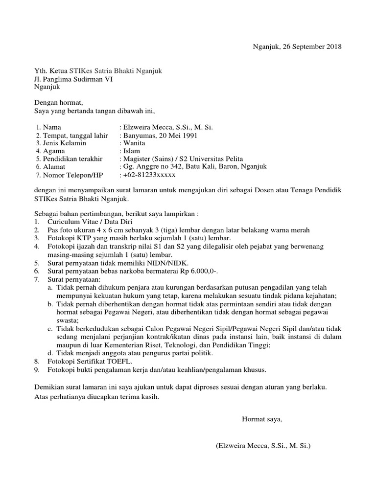 | Lihat Contoh Surat Lamaran Kerja Sebagai Dosen Wawasanpendidikan |